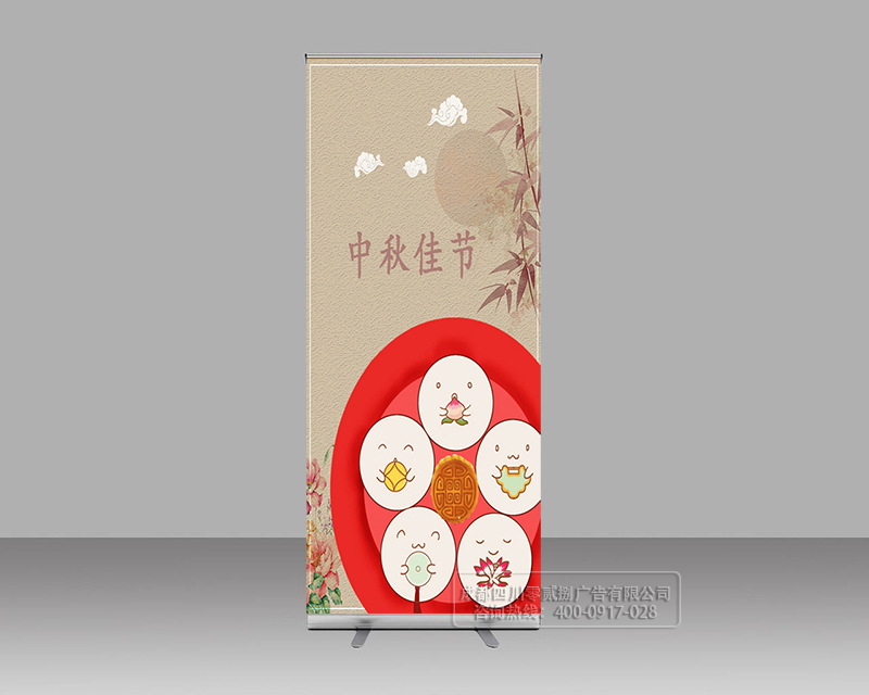 那么都會用什么材料制作中秋廣告宣傳呢,還是要看客戶的選擇。可以選用易拉寶展架形式,易拉寶展架組裝簡單,收放便捷,還可反復(fù)使用,只需要重新制作畫面進(jìn)行更換即可。